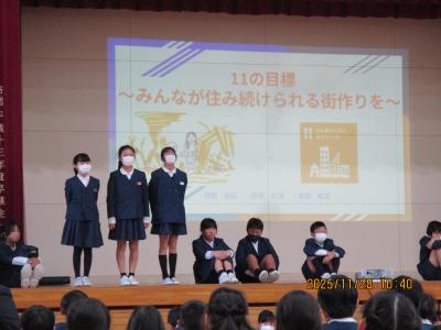 3年生以上は、総合的な学習の時間で学んだことをそれぞれグループに分かれて発表してくれました。
