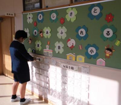スクールサポートスタッフの方が、いつも季節のかわいい掲示を作ってくださいます。ありがとうございます。