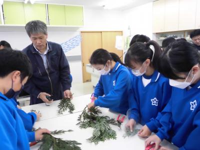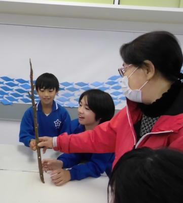 5年生の子供たちも普段触ったことのない針葉樹林の葉や幹を触りながら、生活を豊かにできるものづくりができることを知り、とても楽しそうに活動していました。