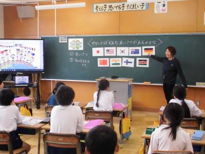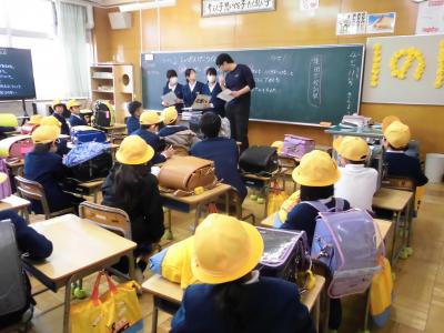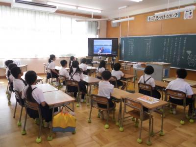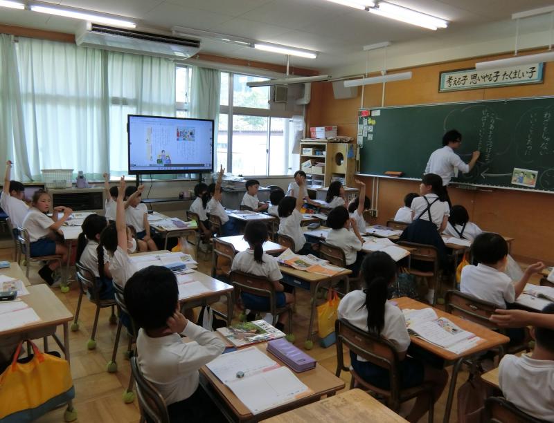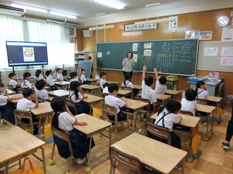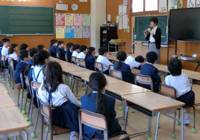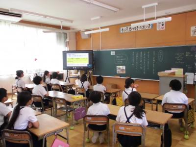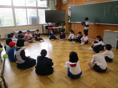 2年生は生活科の町探検で学んだ「あがたのすてき つたえ隊」の発表。