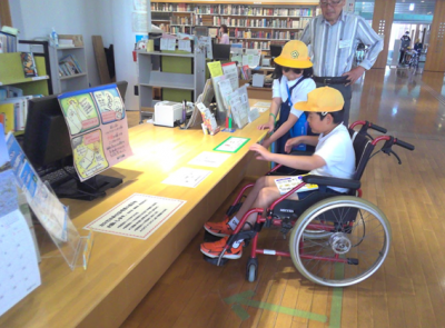 英田小学校の図書館にはたくさんの本があり、楽しく居心地の良い空間になるようにたくさんの工夫もされています。