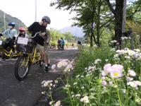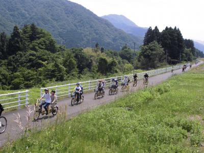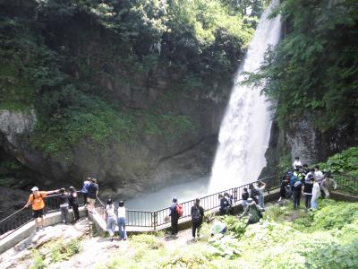 玄関前で説明を聞いた後は、実際に河合谷線沿線を体験走行し、滝の谷霊水で水汲みや即売所の見学もさせていただきました。
