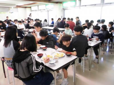 みんなで協力して配膳し、ロスがないように食べられる人にはたくさん食べてもらい、おいしく感謝していただいています。