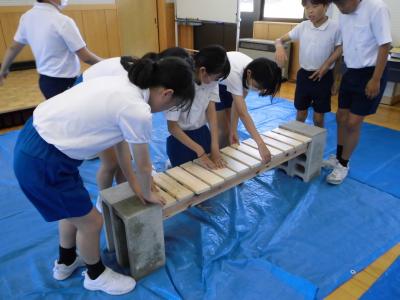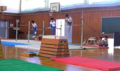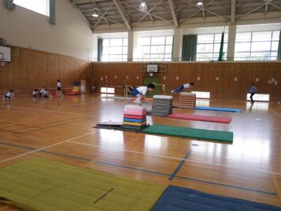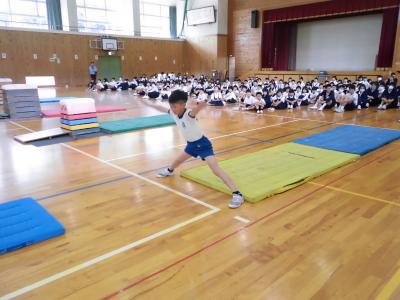 高学年は、個人技からだんだん人数が増え、大技へとレベルアップしています。みんな息を合わせて、真剣に練習に取り組んでいます。本番ではどんな技が見られか、楽しみです!