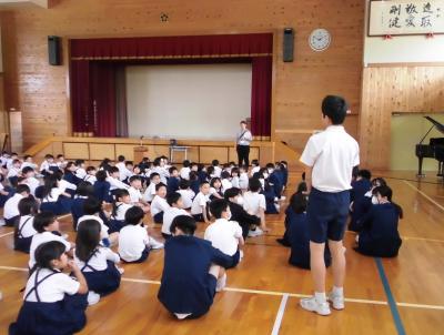 10月1日(水)に英田小学校の先輩にあたる欧勝海関が学校を訪問してくれました。