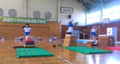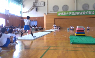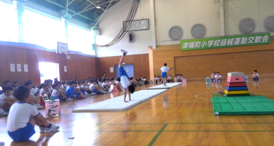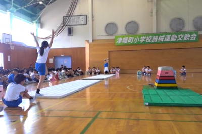 集団演技では、津幡町歌に合わせて、各学校で練習してきた演技を350名ほどの6年生が全員で行いました。