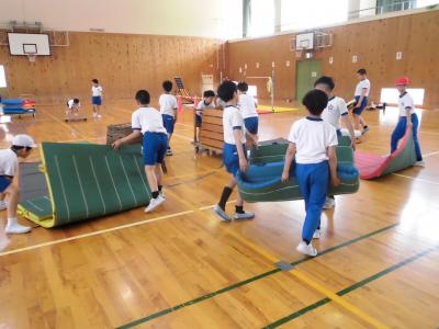 4月4日(金)、新6年生が入学式準備のために登校してくれました。幔幕を張ったり、椅子をたくさん並べたり、国旗や町旗を掲げたり、、、大変な会場づくりをてきぱき行ってくれました。また、玄関や教室等の掃除もすみずみまでしてくれました。1年生を迎える準備を進んで行っている様子は、さすが最上級生!とても頼もしい姿でした。