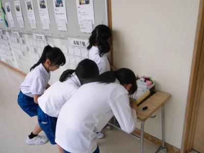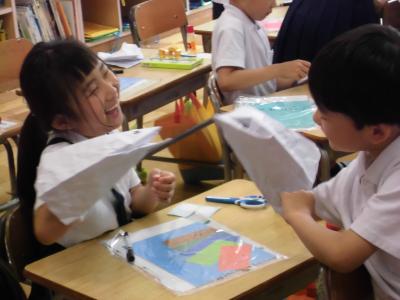 ◆ だれかがうるさかったら、6年生がすぐ、やさしく「しずかにして」といっているところがすてきだと思っていたのでまねしたいです。6年生の考えた「名前くじ」というゲームで(中略)1年生がはずかしがっていたら6年生がサポートしていたので、そういうところもまねしたいです。