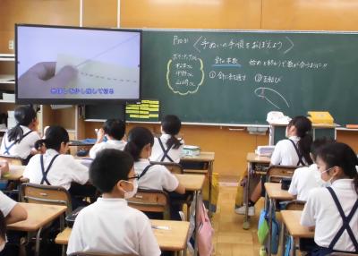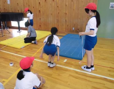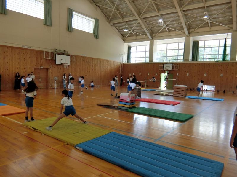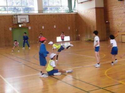 低学年は、動画や先生のお手本を見ながら、1つ1つの動きをだいぶ覚えることができました。大きく体を動かすように頑張っています。