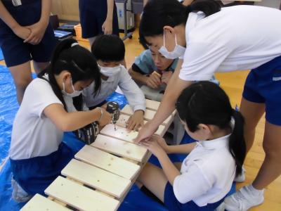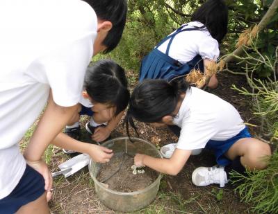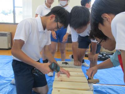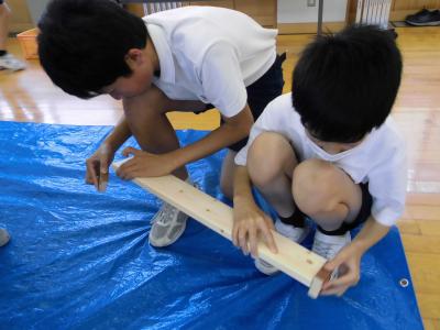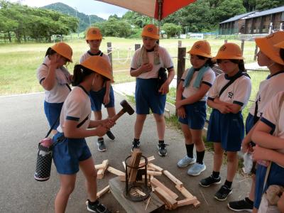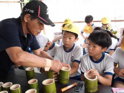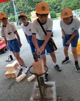5年生の子供たちも普段触ったことのない針葉樹林の葉や幹を触りながら、生活を豊かにできるものづくりができることを知り、とても楽しそうに活動していました。