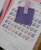 ピカピカの新しい教科書。新しいノートやドリル。名前を書く字にも力が入っていました。