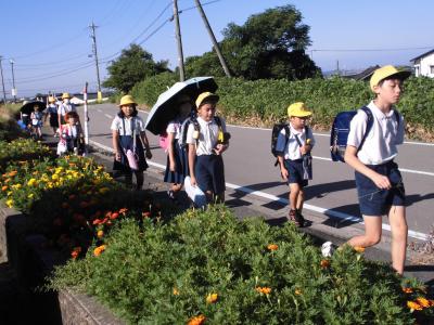 天候悪化や不審者対応など、安全面確保のため、集団で下校することがあります。