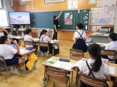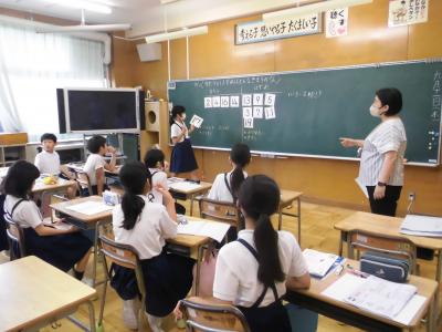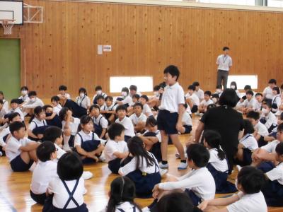 2年生は生活科の町探検で学んだ「あがたのすてき つたえ隊」の発表。