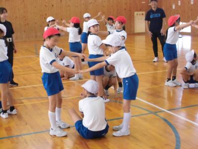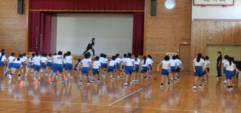 1限3年生、2限1・2年生、3限4年生、4限5・6年生と、全学年で実施し、それぞれの学年に応じた思いっきり体を動かす運動を教えていただきました。