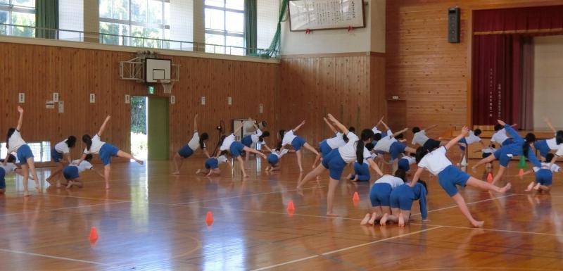 低学年は、動画や先生のお手本を見ながら、1つ1つの動きをだいぶ覚えることができました。大きく体を動かすように頑張っています。