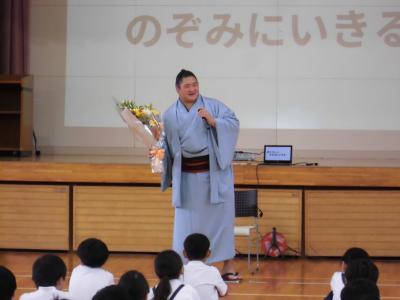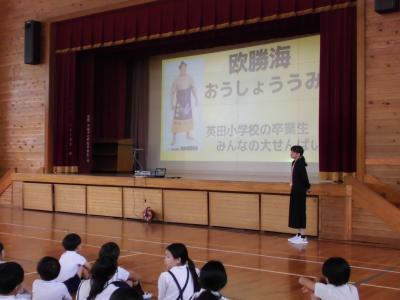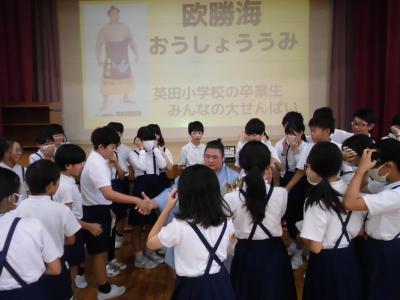 10月1日(水)に英田小学校の先輩にあたる欧勝海関が学校を訪問してくれました。
