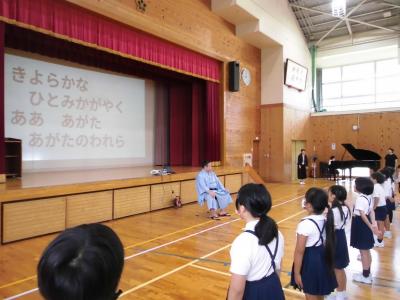 1年生は、国語の物語教材「くじらぐも」の群読。
