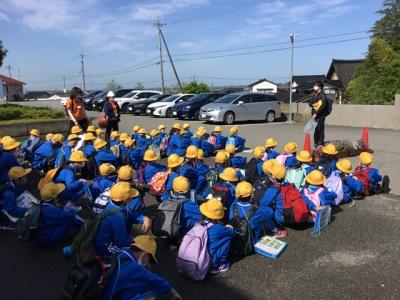 津幡警察署の方からのお話を聞き,交通安全のDVDを観た後,学校周辺の道路を実際に歩きながら安全な歩き方について学びました。