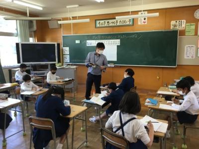 3年生から新たに外国語活動の学習が始まります。語学指導協力員の上田先生と外国語担当の谷村先生が授業を担当します。