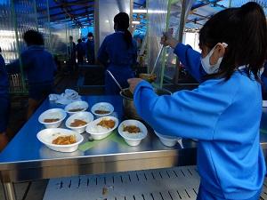 「私たちは、食べる前に「いただきます」と言ってご飯を食べますが、それには2つの意味があるのです。1つは、この給食を作ってくれた人、材料を育ててくれた人、運んでくれた人達への感謝の心です。もう1つは、肉、魚、野菜のいのちをいただくことへの感謝の心です。人間は、いろいろなもののいのちをいただいて食べていかなければ、生きてはいけません。ですから、そのいのちをいただくことに心から感謝して、「いただきます」、いただいた後には「ごちそうさま」を言いましょう」