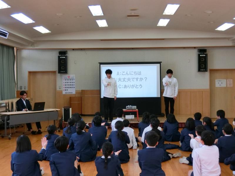 12月4日(木)、6年生を対象にSDGs特別授業が行われました。この特別授業をしてくださったのは、テレビ等でおなじみの「ぶんぶんボウル」のお二人です!SDGsについて、クイズ等も交えながら分かりやすく授業してくださいました。トークが面白くて、あっという間の1時間でした!!