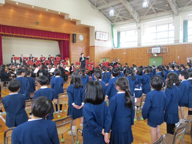 11月20日(水)、芸術鑑賞教室が行われました。東京シティ・フィルハーモニック管弦楽団の皆さんが、東京からはるばる津幡まで、演奏に来てくださいました!演奏してくださった曲は、音楽の教科書に載っているものや、テレビで聴いたことがあるなど、よく耳にする有名な曲がほとんどで、みんな美しい音色に釘付けでした。途中、楽器紹介や児童代表3名の指揮者体験もありました。最後にオーケストラの方が校歌を演奏してくださり、みんなで校歌を合唱しました。本格的なオーケストラの生演奏を聴くことができるというのは、めったにないことだと思います。とても貴重な経験となりました。