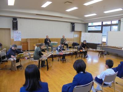今日は、津幡町の「三曲会」のみなさんにお越しいただき、邦楽体験学習を行いました。