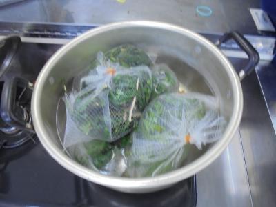 県木である「あて」の葉を煮込んで芳香剤作りを、また本校の周りにたくさん植えられている「桜」の枝を使ってハンカチの染色を行いました。