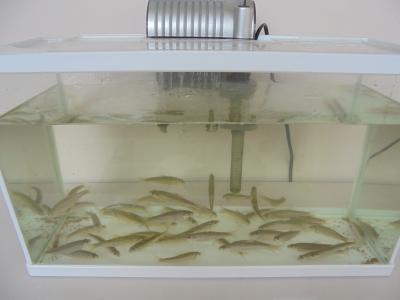 いただいたホンモロコは職員室の前の水槽で,毎日元気に泳いでいます。