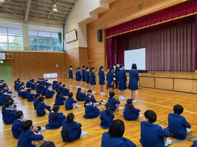 旅立ちの言葉では全員の声や動きがぴったりそろい,体育館中に歌声が響き渡りました。