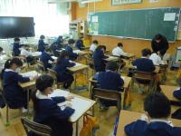 今日の総合的な学習で、視覚に障害をお持ちの米島さんと米田さんをお招きし、人権講演会(交流会)を行いました。普段の生活の中で工夫していることや困ること、点字ブロックや音声信号のことなどについて教えていただきました。普段私達が何気なく目にしたり聞いたりしていることも、障害をお持ちの方にとってはとても大切なものであることがわかりました。
