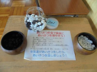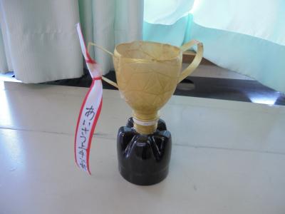 また,企画委員会では「あいさつ運動」でがんばったクラスへ渡すトロフィーを作成していました。