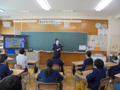 SCの藤解先生,津幡中学校の橋口養護教諭をゲストティーチャーとしてお招きし,6年生を対象に「こころの健康教室」を行いました。