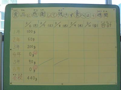 一週間取り組んだ結果、どの学年も1回は残食0gの日がありました。さすが6年生は毎日完食でしたね。