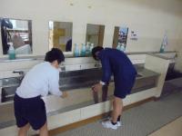 今日は6年生がお世話になった校舎の掃除をしました。特にコロナ禍で毎日手洗いうがいした洗面台をピカピカにしました。メラミンスポンジなどを使って,流し台だけでなく蛇口や鏡もきれにしました。