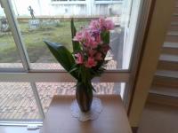 卒業式の際にいただいた花鉢や、式場や控室に飾られていた式花を、校内に飾ってあります。