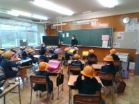 今日は集団登校の班をもとに、天候不良等で集団下校を行う場合の訓練を行いました。教師も児童と一緒に下校し、集団での登下校の仕方、朝の集合場所や危険箇所の確認を行いました。