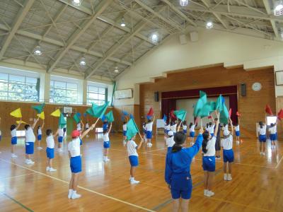 リレーから閉会式、「フラワー(踊り)」の流れを確かめました。並び方や姿勢、礼の仕方など、だんだん上手になってきました。