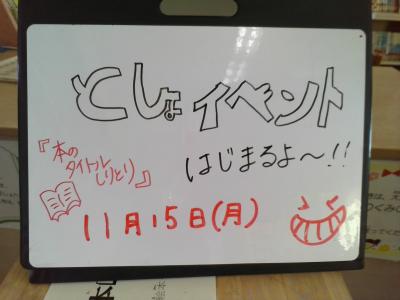 図書委員会の企画「本のタイトルしりとり」です。タイトルでしりとりになるように本を借りていきます。2年生たちが図書室に来ていました。うまくしりとりになるように本を借りられたかな。