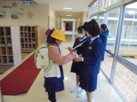 一週間延期をした「6年生を送る会」ですが、明日本番を迎えます。今日の朝、1年生がメダルを、2年生が招待状を持って6年教室におじゃましました。