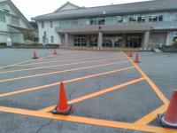 校門から児童玄関にかけて、黄色のラインを引いてもらいました。登下校時における学校敷地内の児童の歩行をより安全にするためのものです。