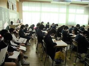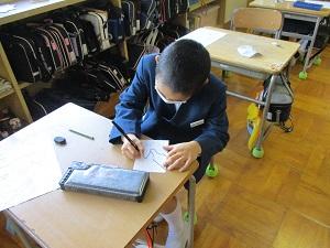 習字紙でポイントを練習しているクラスやいよいよ書初め用の紙に何枚か書いているクラスもありましたが、みんな真剣に取り組んでいました。