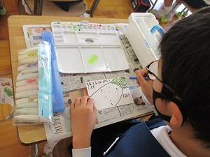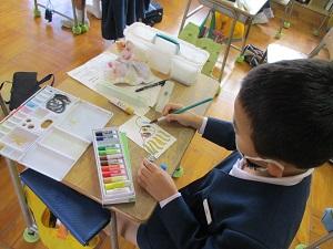 さて4・5月の休校明けから、企画委員会が中心になって行っている地域との交流活動に「みんなでつながろう 英田小学校プロジェクト」があります。第1弾「折り鶴プロジェクト」に続き、第2弾として「お世話になった方に年賀状をおくろう」を実施することになりました。そこで3・4年生はゲストティーチャーをお招きして「絵手紙教室」を開き、そこで絵手紙の描き方を教えていただくことになり、今日、地域の加藤さん、奥野さん、中川さんに絵手紙を教えていただきました。