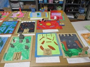 5年生。図工の木で作った「わくわくプレイランド」の作品です。
