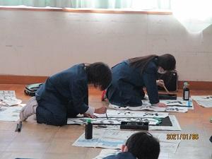 そして、3限目は書き初め大会です。どの学年も一生懸命集中して取り組む姿が見られました。
