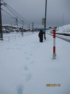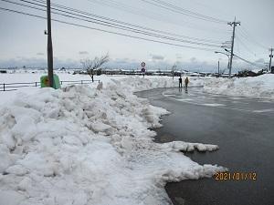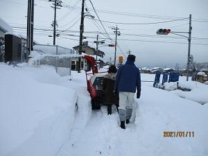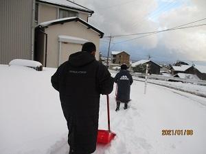 津幡町の小中学校は、明日12日(火)は休校となりました。でも、明後日13日(水)には子どもたちが歩いて登校できるように少しずつ歩道の除雪を進めました。