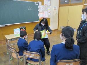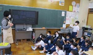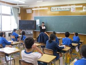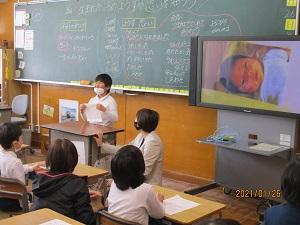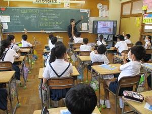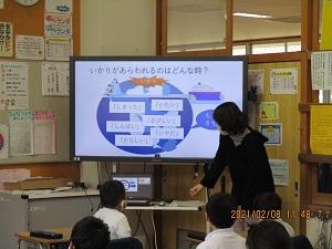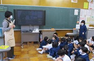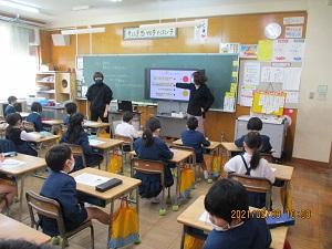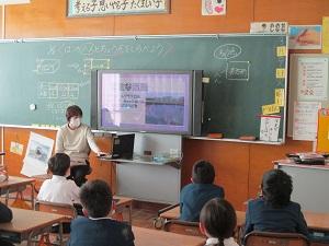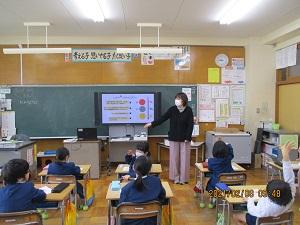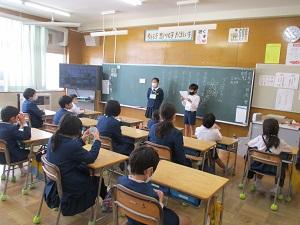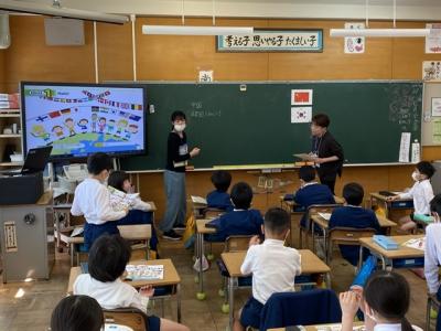 3年生から新たに外国語活動の学習が始まります。語学指導協力員の上田先生と外国語担当の谷村先生が授業を担当します。