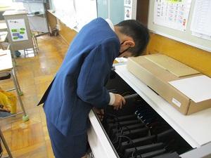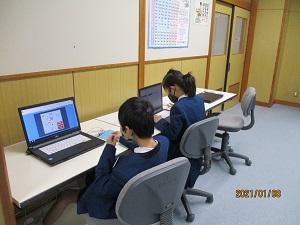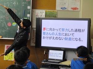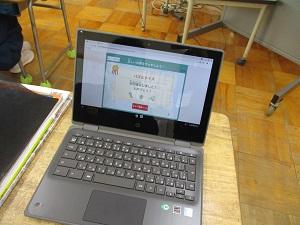 3年生。パソコンを使って、自分の写真に3学期のめあてを書き込むという学習をしていました。