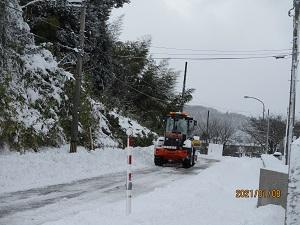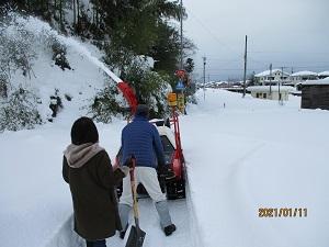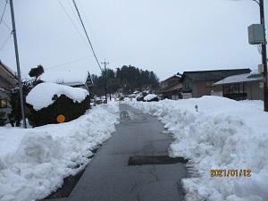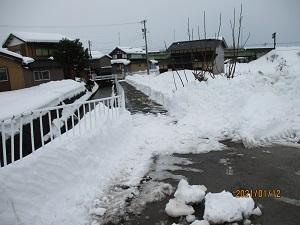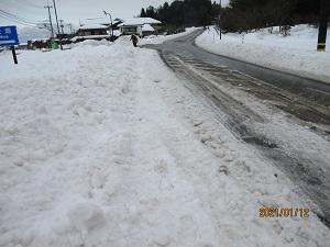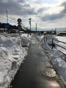 まず、学校から公民館の方へ向かい、郵便局までの歩道は、何とか確保しました。しかし、谷内方面の道はまだ工事の関係の方と連絡がつかず、除雪できていません。谷内方面からの道は、あさってまでには何とかして通れるようにしようと思います。また、このホームページでお知らせしますね。