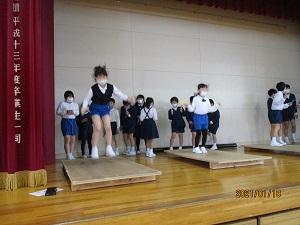 6年生。体育で、なわとびやバスケットボールをしていました。